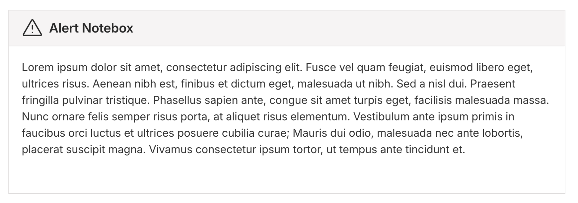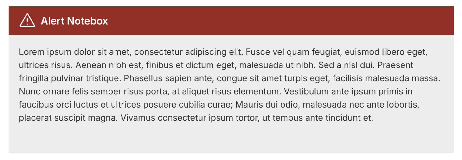 Alert notebox with and icon and color background for header. The icon can be changed via the icon block library. Important The following items…